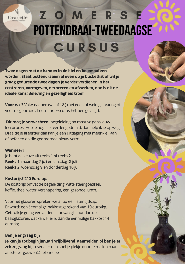 2026-ZOMERSE POTTENDRAAI TWEE DAAGSE + afdraaimoment