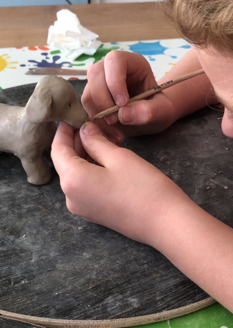 We bespreken vooraf (in grote lijnen) wat het kind graag boetseert. Voorbeelden hiervan zijn: een huisdier, een tuinkabouter, ....